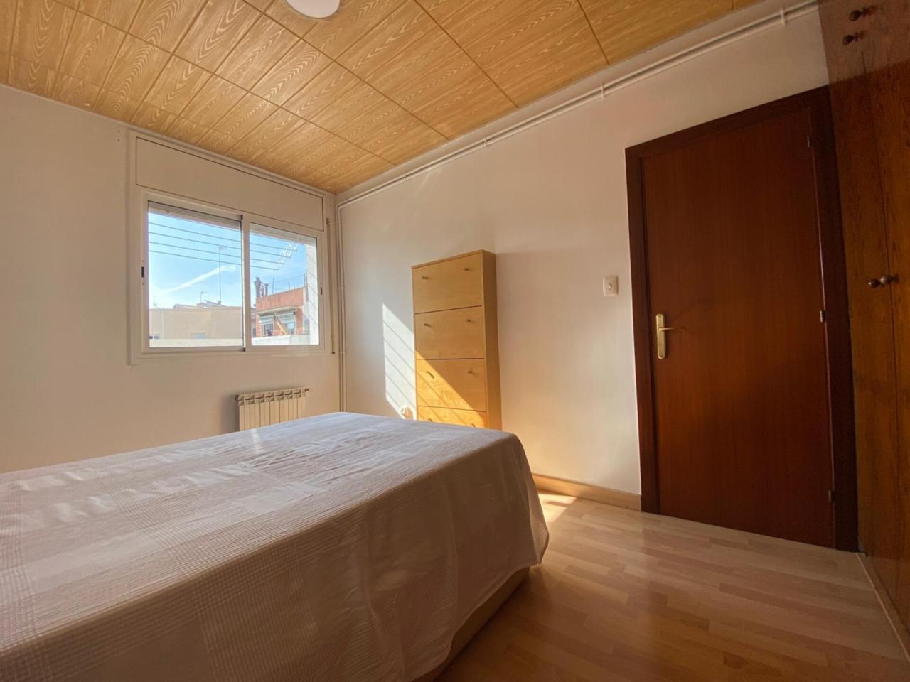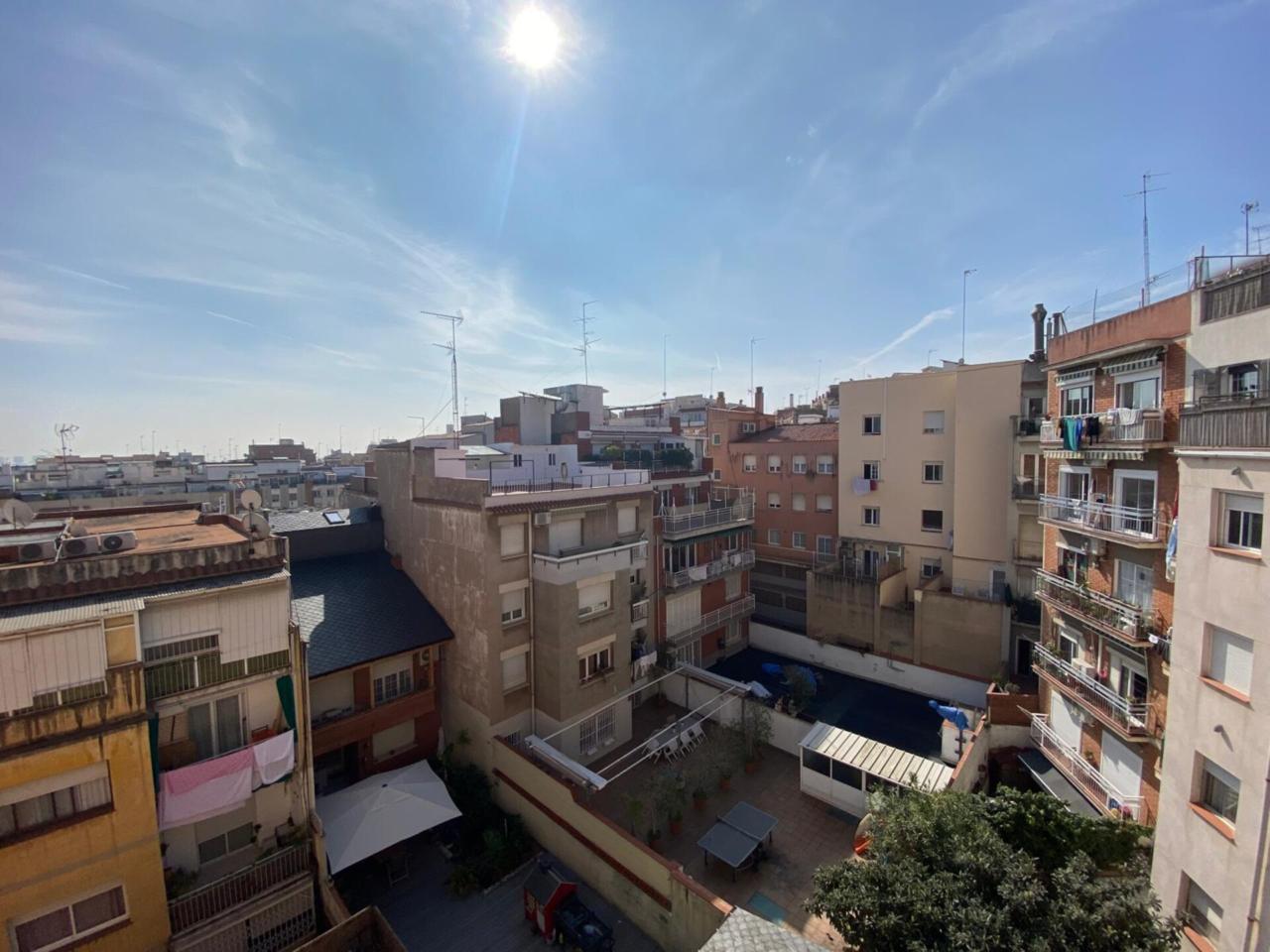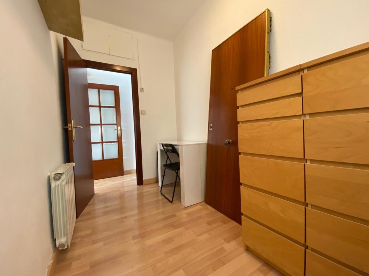 La cocina, actualmente para actualizar, cuenta con armarios altos y bajos y acceso a la zona de lavadero. El dormitorio principal es amplio y dispone de un gran ventanal con vistas a la terraza y a un amplio patio de manzana, lo que aporta tranquilidad y silencio.
