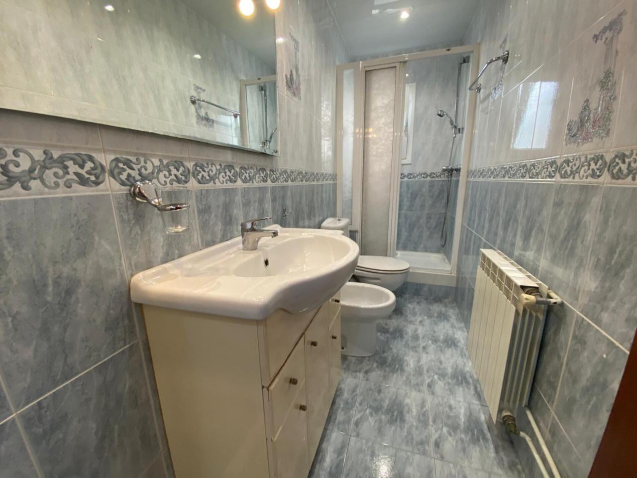 El baño, con ventilación natural, está equipado con plato de ducha de gran formato.